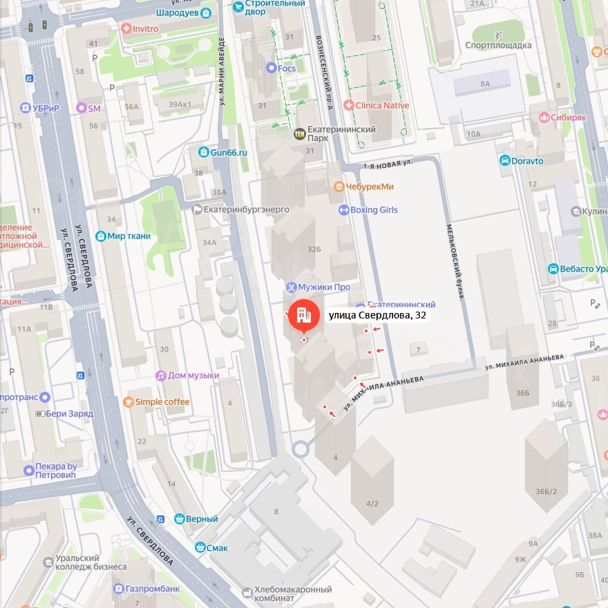 Адрес: Российская Федерация, Свердловская область, г. Екатеринбург, ул. Свердлова, дом 32, кв. 88